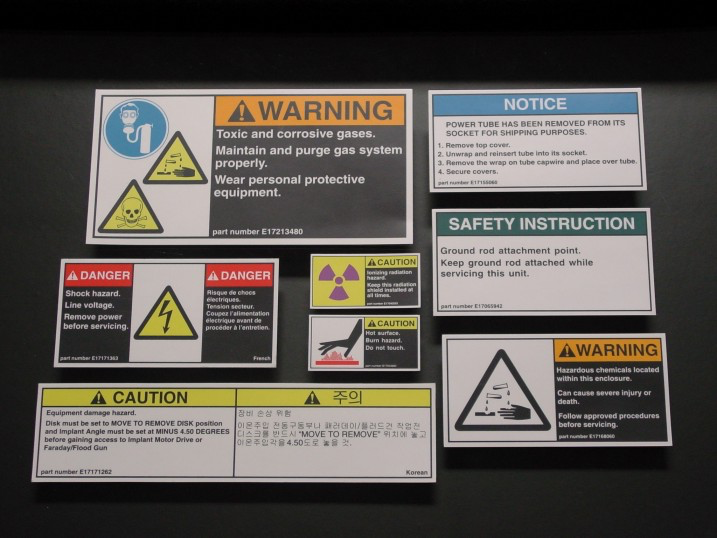 Polyester laminated mylar labels: resistant to solvents, UV light, tearing, heat.