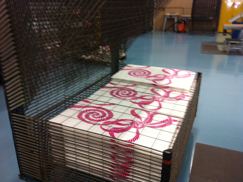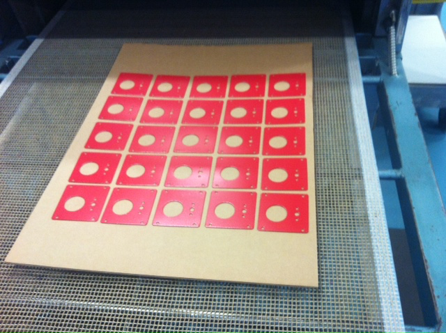 The customer needed these parts fast, so we run them through the dryer a few times so we can screen print the graphics them same-day.